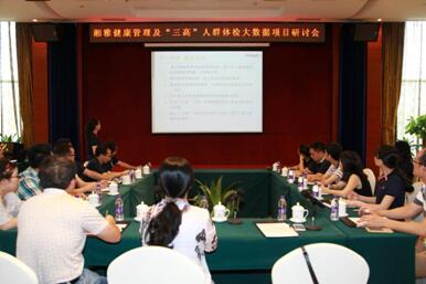 7月20日在星城长沙召开由健康管理大数据项目组主办、中南大学湘雅三医院承办的湘雅健康管理及“三高”人群体检大数据项目研讨会。会议由中南大学湘雅三医院党委书记罗爱静教授主持,参与会议的领导和专家有国家标准委员会、中南大学信息安全与大数据研究院、湖南省卫生计生委、相关兄弟院校等,参加会议的专家领域广泛,吸引了医学专家、管理专家、健康专家、IT专家等,参与项目的工作人员、研究生及专业公司也参加了本次会议。