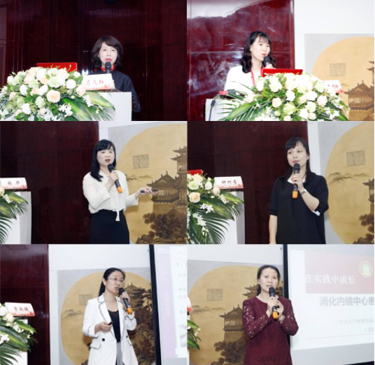 省内外知名护理专家就消化内镜与消化系统疾病护理的最新进展、护理管理工作的常见问题等进行了多场精彩绝伦的专题讲座,为与会者传经送宝。南昌大学第一附属医院消化内镜中心护士长马久红的《胃镜室质量控制体系》、华中科技大学同济医学院附属同济医院消化内镜中心护士长郭巧珍的《消化内镜中心常见护理不良事件及应对策略》、中南大学湘雅三医院护理部副主任钟竹青教授的《基于目标管理的护理质量持续改进》、湖南省人民医院护士长曾敏捷的《消化疾病与营养不良的真知灼见---营养干预在消化疾病转归中的价值应用与探索》、中南大学湘雅医院护士长卢朝霞的《内镜清洗消毒的规范管理与内镜安全管理》、中南大学湘雅二医院护士长张华的《克罗恩病患者的延伸护理》、中南大学湘雅二医院护士长谭丹的《努力前行不断进取——应对飞速发展的消化内镜技术对护理工作的新挑战》,中南大学湘雅医院消化内科护士长莫莹屏的《消化道出血的救治及风险防控》等精彩报告,从理论到临床,着眼前沿、着眼规范,对当前消化护理存在的问题和发展方向进行了深入浅出的探讨和研究,为与会者带来全新的护理和管理理念,充分体现了创新、规范的大会精神。整个会场掌声雷动,高潮迭起。