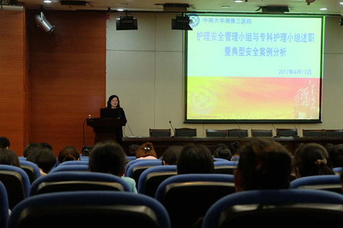 4月13日下午,护理安全管理小组与专科护理小组述职测评会暨安全案例分析在外科楼二楼学术报告厅举行,这是第七届“新湘雅”护理安全教育月系列活动之二。会议由丁四清主任主持,各专项小组成员、全院护士长、质控组长、进修护士共200余人参加。
