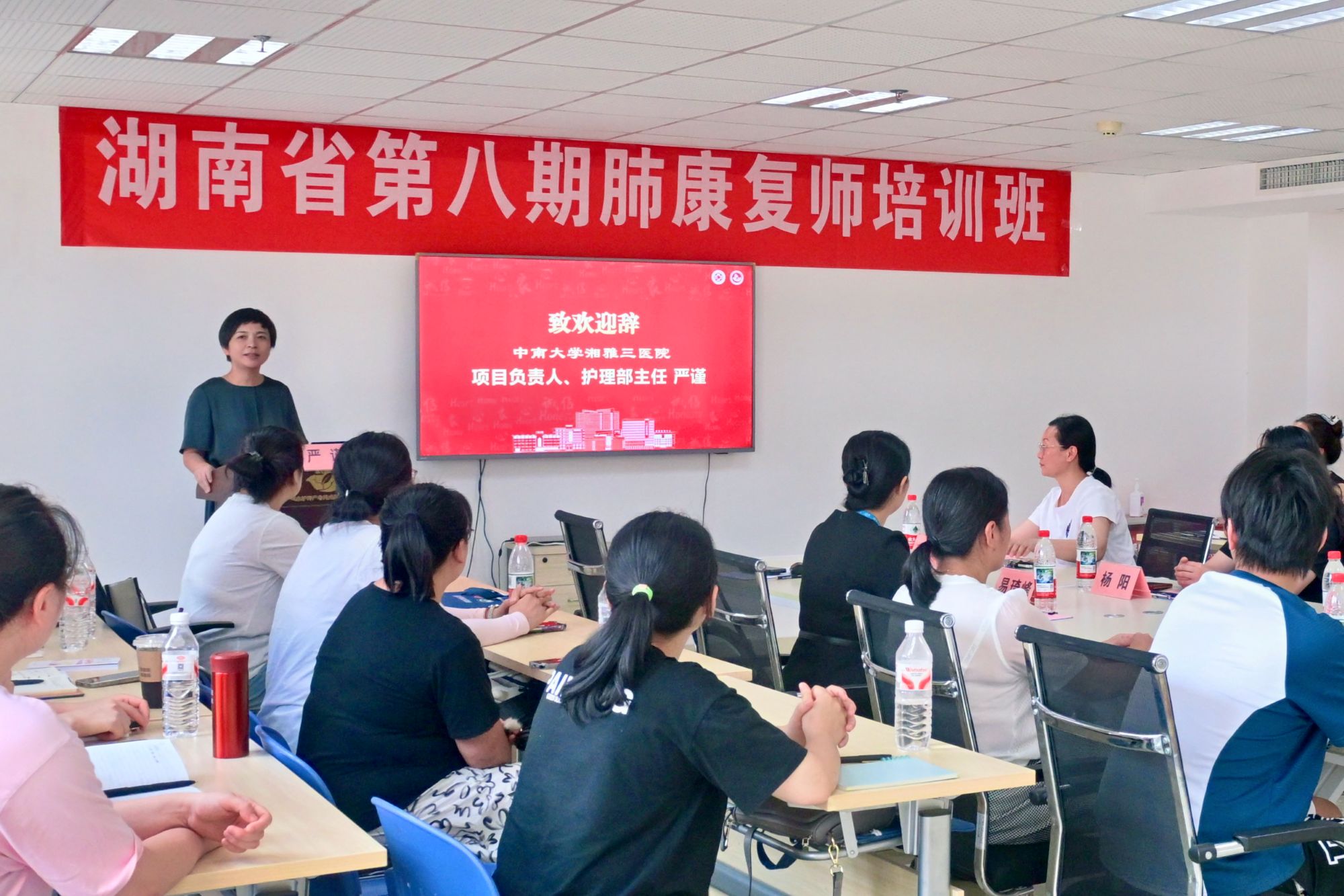 9月16日下午,湖南省第八期肺康复师培训班开班仪式在中南大学湘雅三医院科教楼610室顺利举行。医院护理部主任、项目负责人严谨,呼吸与危重症医学科主任孟婕,呼吸与危重症医学科病区护士长杨阳,呼吸重症监护病区护士长唐迎际,急诊医学科副护士长龙检,授课教师代表以及来自全国各地的20余名学员共同参加。仪式由护理部副主任易琦峰主持。