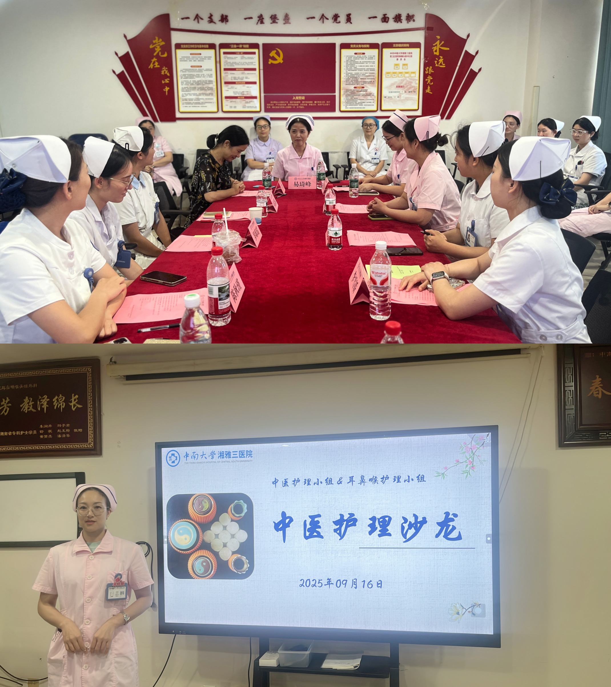 为弘扬中医药文化,提升护理人员中西医结合护理能力,推动中医护理技术在耳鼻喉专科领域的深度融合与精准应用,9月16日,中南大学湘雅三医院耳鼻喉护理小组联合中医护理小组在外科楼13楼示教室举办中医护理技术沙龙。医院护理部副主任易琦峰教授、耳鼻喉护理小组组长王芳教授、中医护理小组组长李碧艳护士长及相关科室护理骨干、护理小组成员、中华护理学会耳鼻喉专科护士临床实践学员、耳鼻喉科进修学员等30余人参加,活动由耳鼻喉护理小组副组长吴牡丽主持。