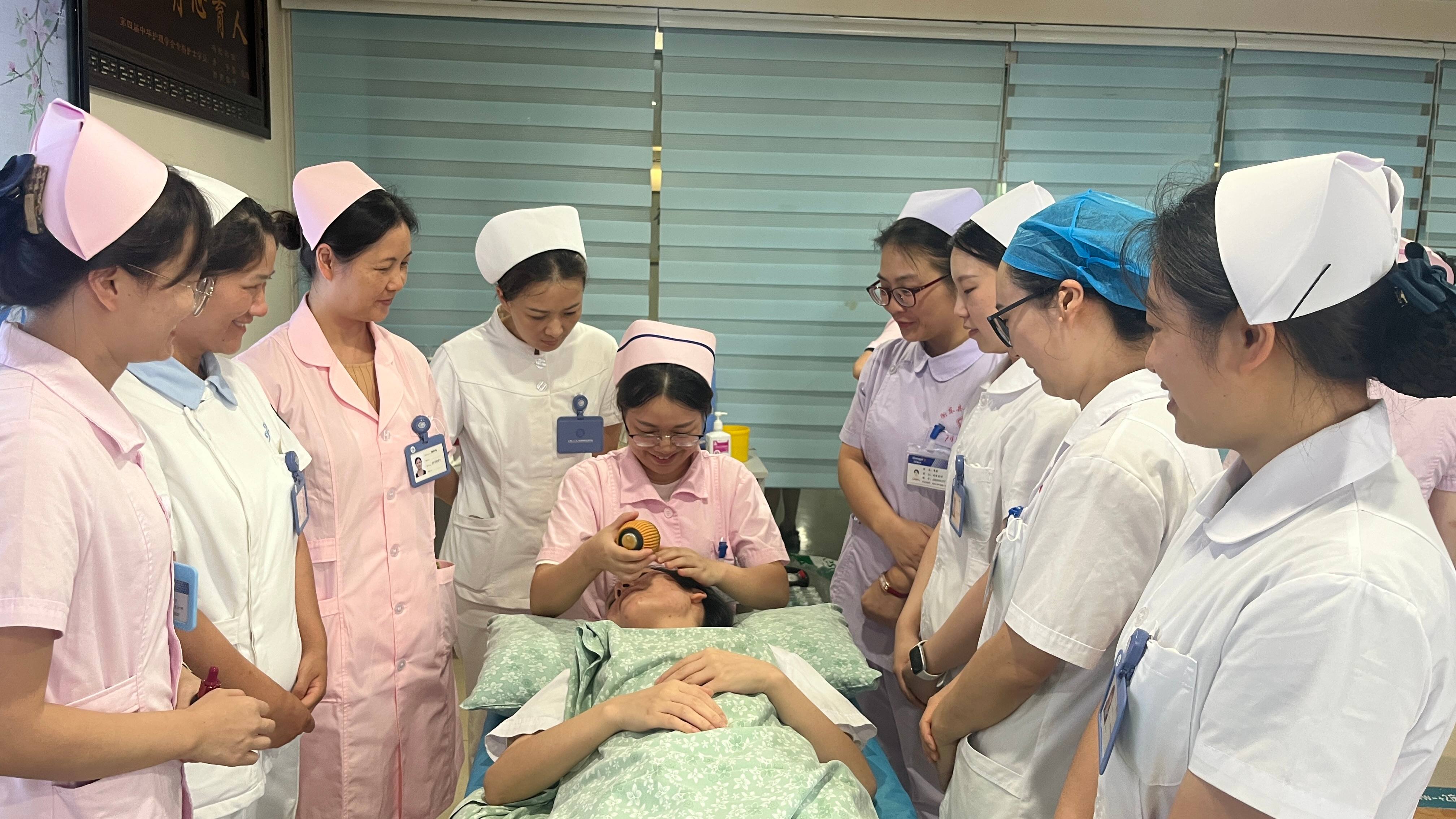 在实操环节,李碧艳护士长与中医科主管护师张同根现场演示了“火龙罐”的辨证施治方法,实践操作了火龙罐在面瘫、偏头痛、头颈疾病患者的肩颈康复、手腕腱鞘炎等疾病中的应用,参会者们积极参与,共同体验了中医护理技术的博大精深,进一步加深了对中医护理技术的了解。