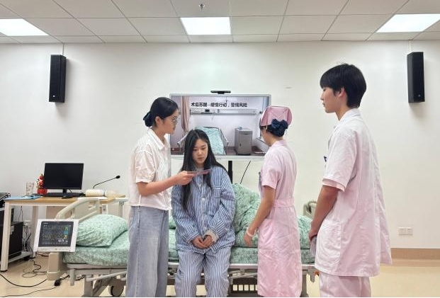 活动伊始,岳阳职业技术学院邱晨旋全组实习生们以《日间手术安心记:细节守护每一步》为主题展开情景剧表演,生动再现了患者从预约、术前宣教、术中核查到术后监护的全流程,凸显了日间手术护理中细节管理的重要性。病友及家属在观看过程中,不时点头表示认同,对护理工作的细心、用心表示赞赏。