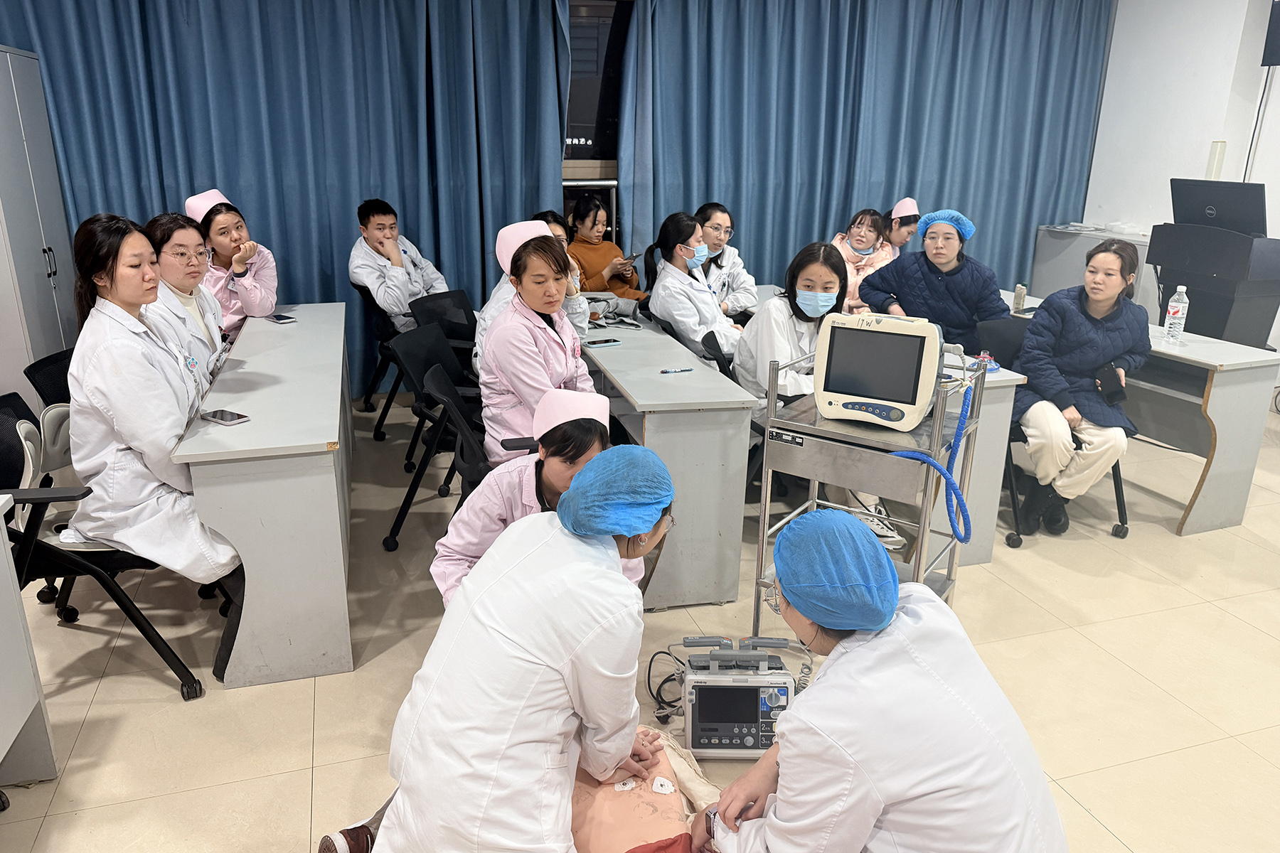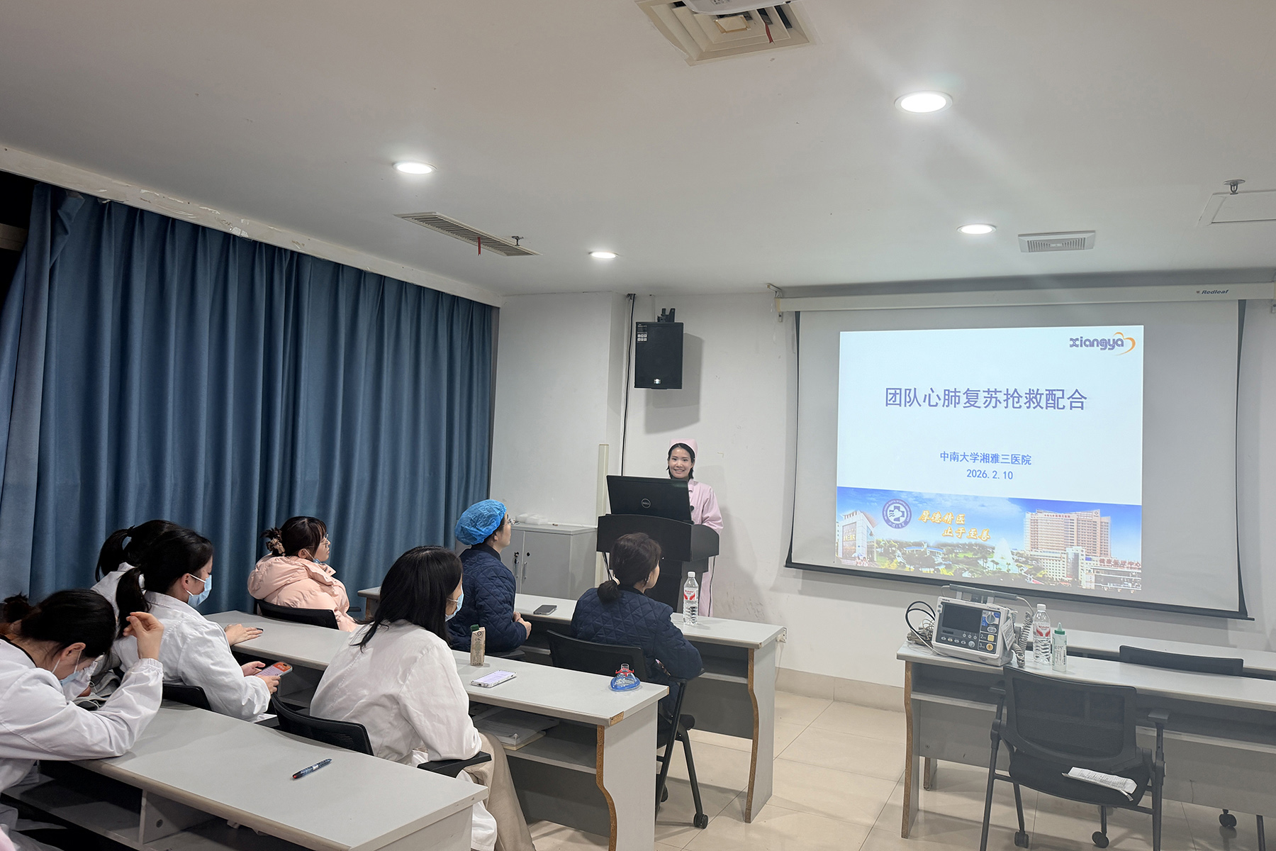 演练正式开始前,付冰主管护师进行团队心肺复苏配合专项讲解,围绕演练核心目标、岗位分工、操作规范及配合要点展开详细说明,进一步明确抢救标准与配合要求,为实战演练打下坚实的理论基础。