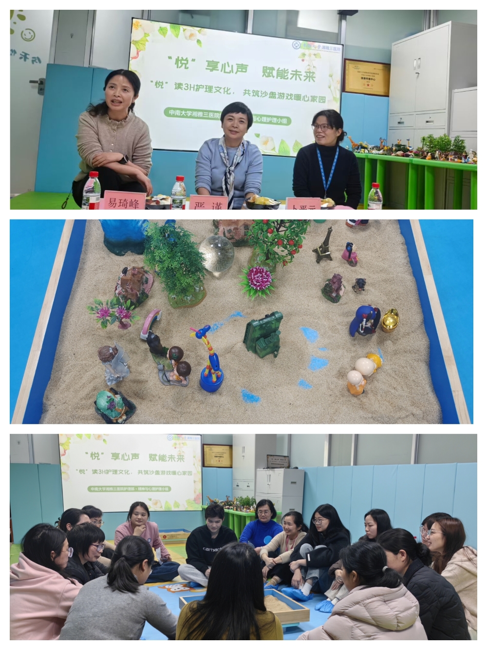 3月19日下午,由湘雅三医院精神与心理护理小组举办的“‘悦’读3H护理文化,共筑沙盘游戏暖心家园”首场活动在儿童保健中心举行。活动特别邀请急诊医学科留观室的10余位护士作为参与对象。护理部主任严谨、妇儿片区科护士长卜平元、急诊科护士长郭美英、精神与心理护理小组组长何微、副组长喻俊出席活动,活动由护理部副主任易琦峰主持。