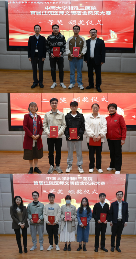 值此中南大学湘雅三医院建院34周年之际,为营造“安全、文明、和谐”宿舍环境,以优良室风和寝室文化带动住院医师学风建设,11月23日,以“医见‘寝’心,‘宿’说文明”为主题的首届住院医师文明宿舍风采大赛决赛在科教楼3楼学术报告厅举行。