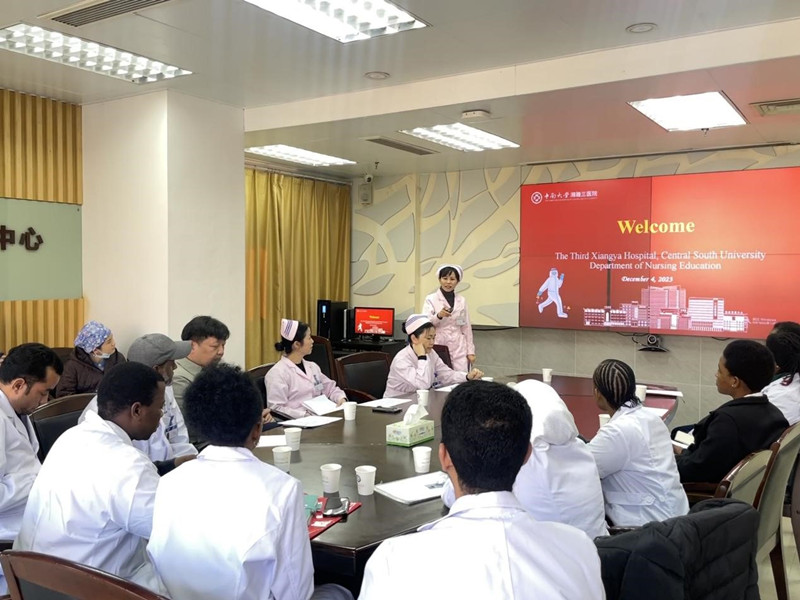 12月4日,湘雅护理学院2023级10位留学生实习的欢迎仪式在外科楼二楼举行。湘雅护理学院研究生管理办公室主任肖江龙、湘雅三医院护理学教研室全体人员、带教科室护士长代表、教学组织代表、全体留学生参加,欢迎仪式由医院护理教研室副主任易琦峰主持。