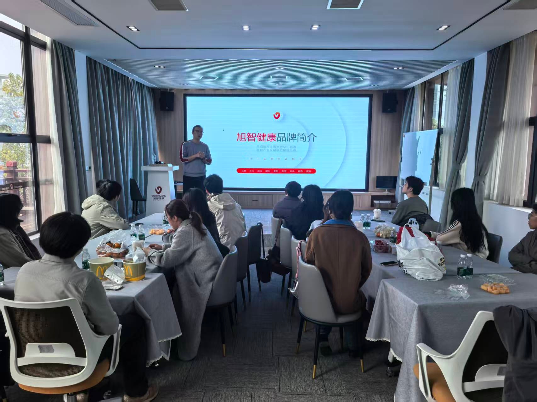 本次活动的核心环节聚焦前沿生物技术与职业转型。旭智生物卢海源总经理作为湘雅学长,首先与同学们分享了自己从临床/科研转型到生物医药产业的创业历程与心路感悟。他的分享不仅提供了超越教科书的行业视角,更启发了同学们对未来医学发展方向的深度思考。随后,学生们通过VR设备,沉浸式体验了微观世界中免疫细胞的工作机制,直观理解了干细胞及免疫细胞在难治性疾病中的应用潜力,以及“生物资源存储”的自身健康管理意义。