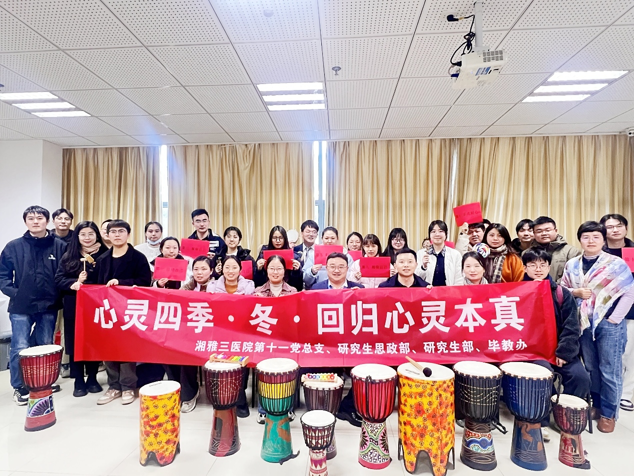 为深入贯彻落实学校关于加强学生心理健康教育的工作要求,帮助医学生在保持心理平衡、有效缓解情绪压力,12月26日,湘雅三医院在科教楼一楼训练室举办医学生心理团建系列活动之 “冬・沉淀:回归心灵本真”。教师代表与医学研究生齐聚一堂,在温馨融洽的氛围中共同赴约一场心灵成长之旅。