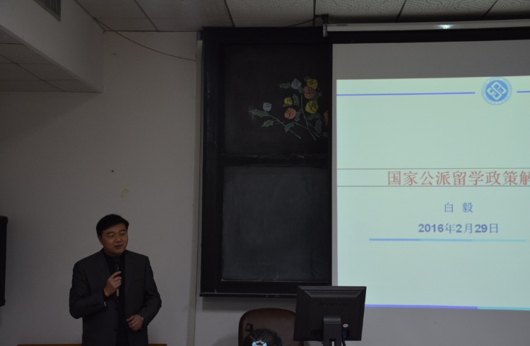 会上,黄进华副院长向与会人员介绍了此次来宣讲的两位专家并致以热烈欢迎,出国留学是拓宽国际化视野,提高科研水平及自身综合竞争力的有效途径,每年公派出国留学的竞争异常激烈,了解公派出国留学政策,更加有益于同学们对于该项目的申报。