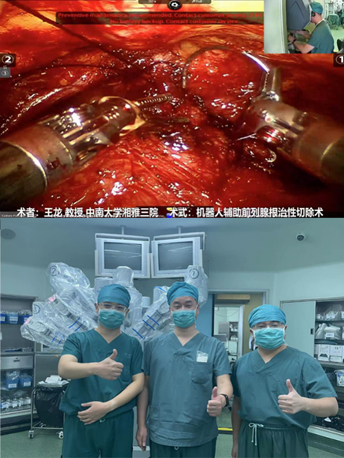 受大会邀约,新湘雅泌尿外科团队领头人、科室主任王龙教授现场直播进行《机器人前列腺癌根治术》手术表演。手术完美保留右侧血管神经束,获得线上线下高度赞誉。科室副主任尹光明、汤进、龙智分别受邀在激光、男科、前列腺等分会场担任主持及讨论嘉宾。