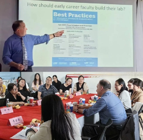 Hong Liu教授代表专家团对湘雅三医院的热情接待表示感谢,并对美国加州大学戴维斯分校的院系规模、特色专科、医学教育和基金项目等进行了介绍。他表示,专家团将积极助推美国加州大学戴维斯分校医学中心与湘雅三医院进一步开展务实有效的合作。