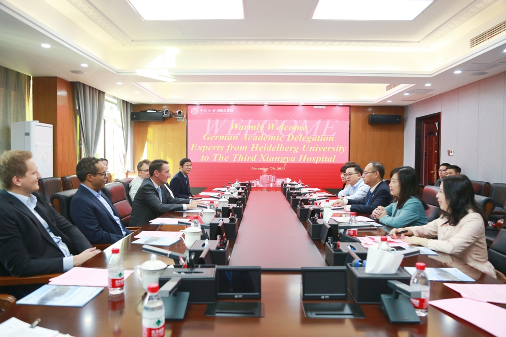 11月7日上午,德国海德堡大学曼海姆医学院第二医学部胃肠科主任Matthias Ebert教授带领包含该院8名教授,以及德国癌症研究中心和德雷斯登工业大学2名医学博士在内的11人学术团队到访中南大学湘雅三医院。