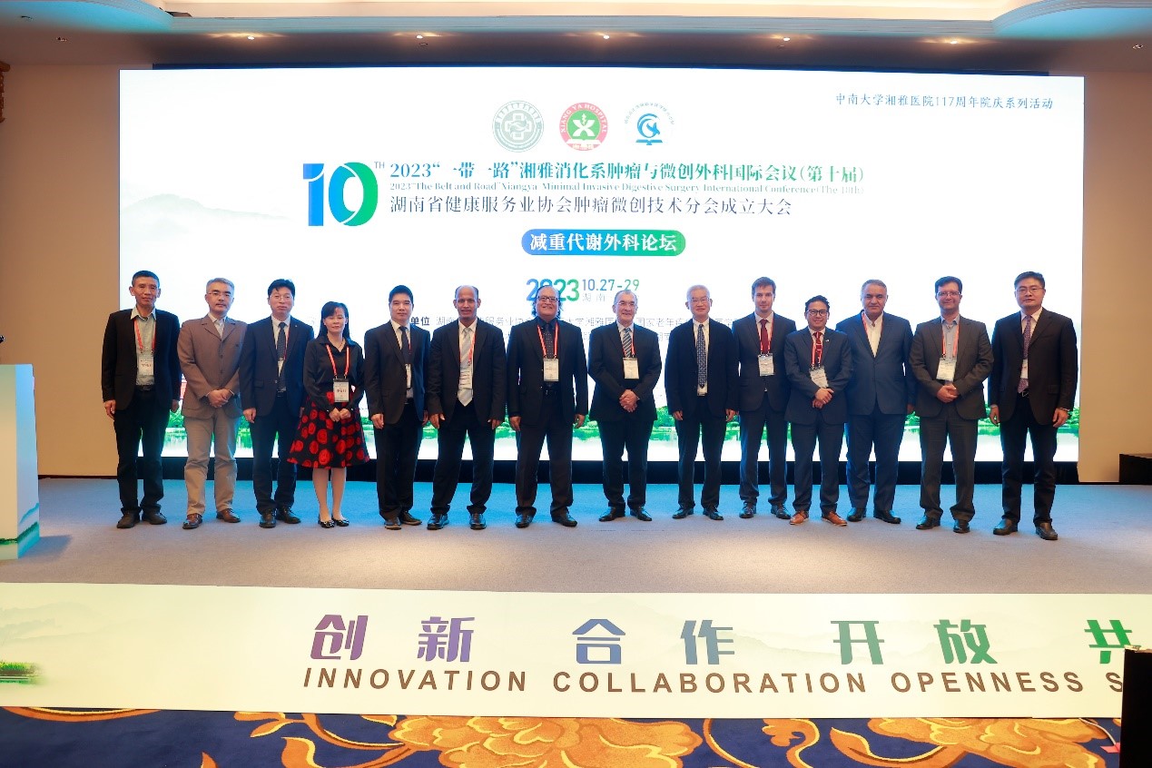 10月27-29日,2023"一带一路"第十届湘雅消化系肿瘤与微创外科国际会议”在长沙举行,湘雅三医院胃肠外科II科成功组织减重与代谢外科国际热点论坛,反响强烈。11月6日,基于对医院减重代谢外科诊疗的高度肯定,巴西减重代谢外科Mottin等专家再次专程组织巴西减重代谢外科团队来医院参观学习交流。