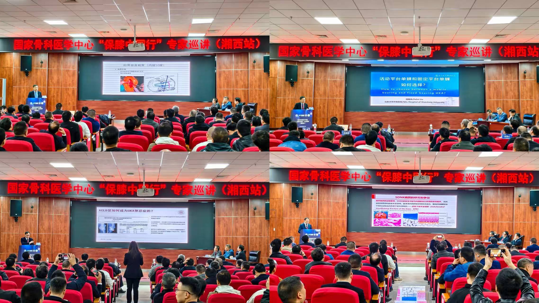 本次大会由中南大学湘雅三医院骨科曹旭教授和湘西自治州人民医院骨科谭扬帆主持。大会汇聚了国内四十余位知名专家学者,以及近三百位省内同行,围绕保膝阶梯化治疗的最新进展与前沿议题进行了系统而深入的探讨,并先后开展了单髁置换、全膝置换及膝关节周围截骨矫形的Workshop实操演示与手术直播。与会者在思想碰撞中激发创新灵感,共同推动保膝技术迈向新阶段。