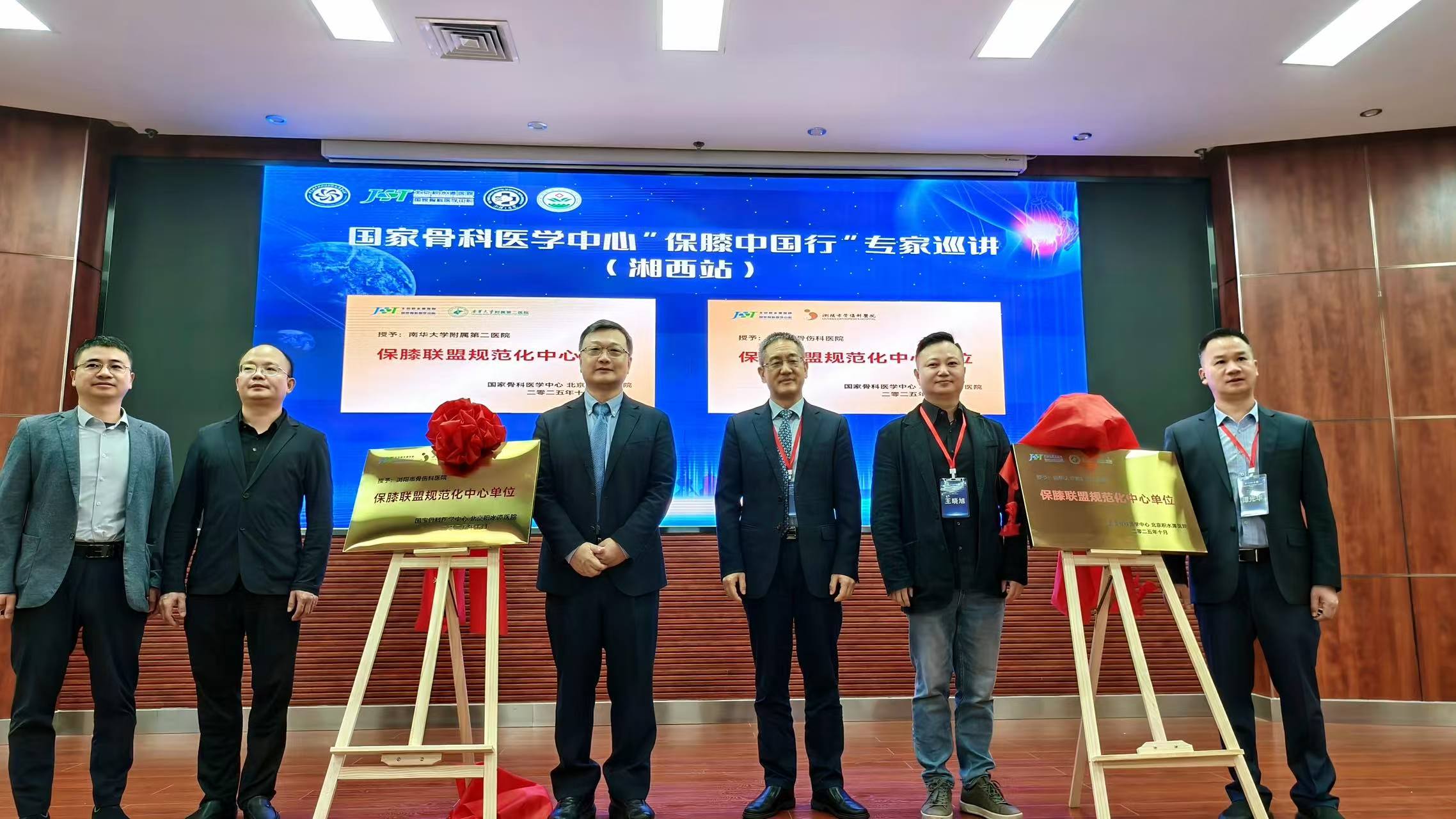 会议期间同步举行了由国家骨科医学中心北京积水潭医院保膝联盟颁发“保膝联盟规范化中心单位”与“保膝病房”揭牌仪式。这一重要举措标志着湖南省保膝事业在全省同道的共同努力下,实现了进一步的规范化、体系化的建设,将为省内外患者提供更加精准、高效的阶梯化诊疗服务。这也是湖南在推进“健康中国”战略过程中留下的坚实足迹,展现了地方实践的智慧与力量。