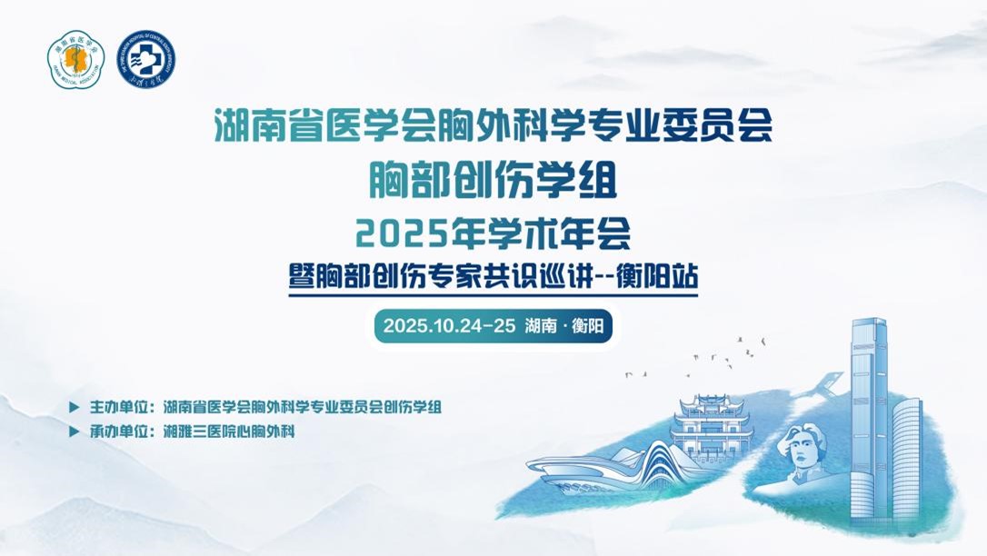 金秋十月,衡阳迎来了一场胸部创伤领域的学术盛会。2025年10月24日至25日,由湖南省医学会胸外科学专业委员会胸部创伤学组主办、湘雅三医院心胸外科承办的学术年会暨胸部创伤专家共识巡讲在衡阳悦来花园酒店成功举办。本次会议汇聚了省内外众多胸部创伤领域的专家学者,围绕胸部创伤的最新诊疗进展和技术难点进行了深入交流,为提升湖南省胸部创伤诊疗水平凝聚了共识,指明了方向。