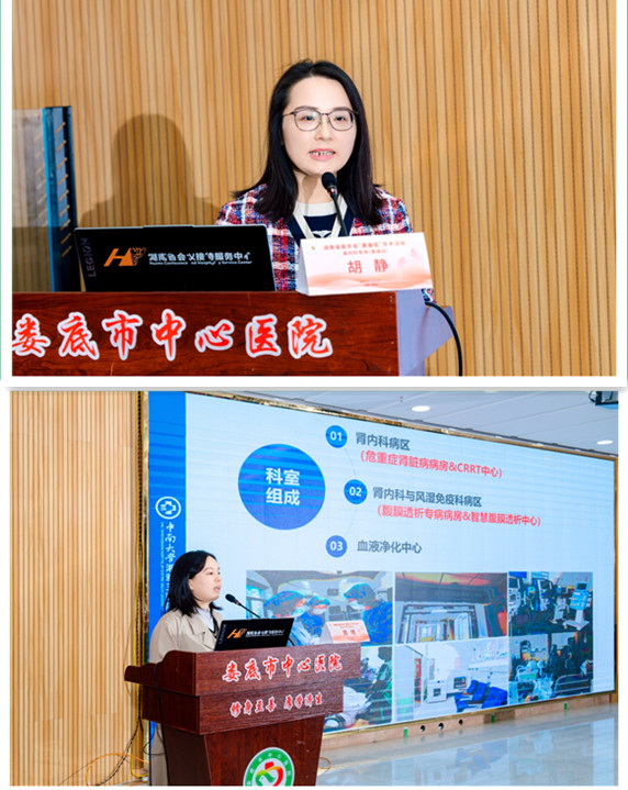 学术活动环节,易斌教授详细解析了《微小病变型肾病综合征诊疗策略》;王建文教授就《如何提升血液透析患者生活质量》进行阐述;胡静教授对《基于IMPACT CKD谈CKD的管理》侃侃而谈;肾内科周晴护士长和大家沟通交流了《慢性肾病患者围透析期管理》;常德市第一人民医院的桂永丰教授带来的课题是《单个腹膜透析中心建设与思考-基层医疗单位如何开展腹透》;娄底市中心医院的医护团队报告了疑难病例,与会的专家们纷纷提出专业的指导意见以及诊疗方案。会场气氛热烈、反应良好。