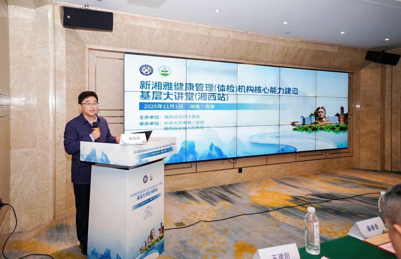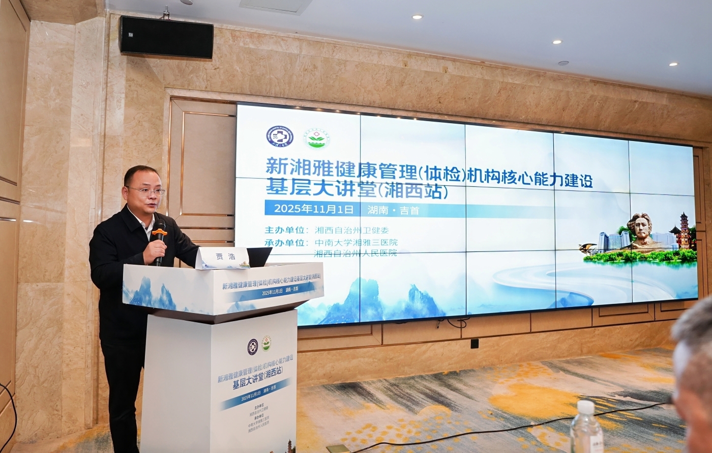 为贯彻落实湖南省“高水平医院结对帮扶医疗资源薄弱地区医疗机构”政策,深入践行健康中国战略,推动优质医疗资源精准下沉,提升湘西地区医疗机构健康管理服务能力,2025年11月1日,“新湘雅健康管理(体检)机构核心能力建设基层大讲堂(湘西站)”在吉首市煜龙酒店成功举办。此次活动由湘西自治州卫健委主办、中南大学湘雅三医院与州人民医院联合承办,全州53家基层医疗机构的近200人参会,标志着省级优质健康管理资源持续向少数民族地区延伸。
