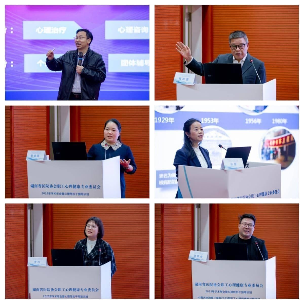 2025年11月29日,由湖南省医院协会职工心理健康专业委员会主办、中南大学湘雅三医院承办的2025年学术年会暨心理危机干预专题培训班、中南大学湘雅三医院心理委员培训班顺利落幕。来自全省各级医疗机构及高校的专家学者、临床工作者、工会负责人和心理委员代表200余人齐聚湘雅三医院外科楼学术报告厅,以学术交流凝聚共识,以专题培训夯实技能,以案例分享赋能实践,共同推动湖南省职工心理健康服务的提质增效。