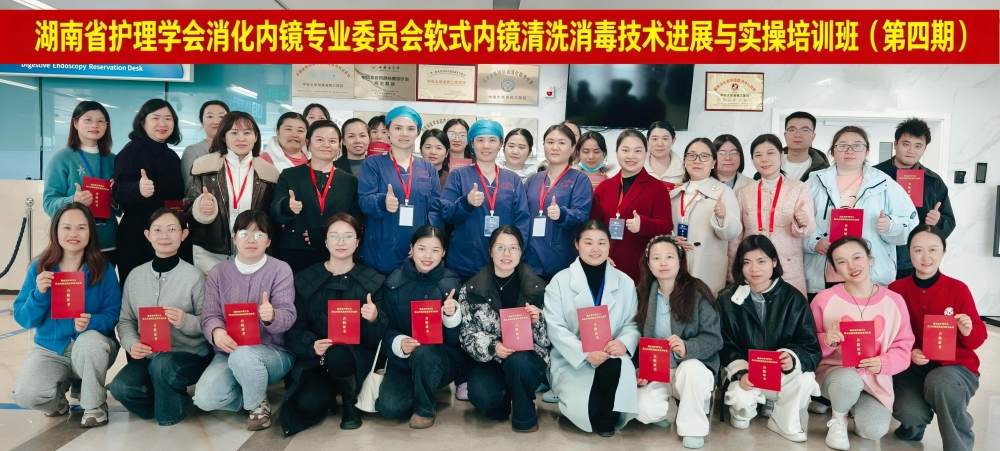 中南大学湘雅三医院消化内镜中心作为湖南省护理学会消化内镜专业委员会主委单位及湖南省消化内镜专科护士培训基地,充分发挥牵头引领作用,主动扛起行业责任,精心统筹、周密部署培训工作。为保障培训质量,科室深度整合省内软式内镜清洗消毒领域的优质专家资源,组建了一支由资深内镜护理专家、院感防控专家等领域骨干组成的高水平教学团队,为四期培训班提供了稳定且高水平的教学保障,赢得了参训学员的广泛认可与高度评价。