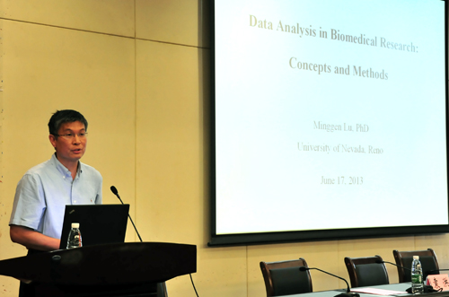 随后,陆明根教授以《DataAnalysisinBiomedicalResearch:ConceptsandMethods》为题做了学术讲座,分享了他多年从事医学生物统计经验和心得,并对听众提出的试验设计、数据管理、统计分析方面的问题进行了解答。