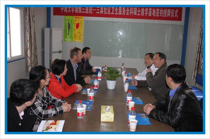 3月25日上午,澳大利亚Flinders大学健康科学院院长Michael Kidd教授由湘雅三医院党委副书记邓云龙及人才办、院办、全科医学教研室等有关负责人陪同来到湘雅三医院全科医学教学基地——三真社区卫生服务中心进行参观访问。三真医疗连锁机构董事长成扶真、医务总监文体端、三真社区卫生服务中心主任尹民飞进行了接待。