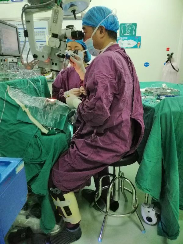 一上手术台,唐教授便全身心投入到手术,直到下台活动时才记起左腿似乎由于长时间的坐立,有些许疼痛。