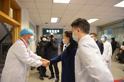 1月22日 中南大学校长田红旗视察与张天一亲切握手