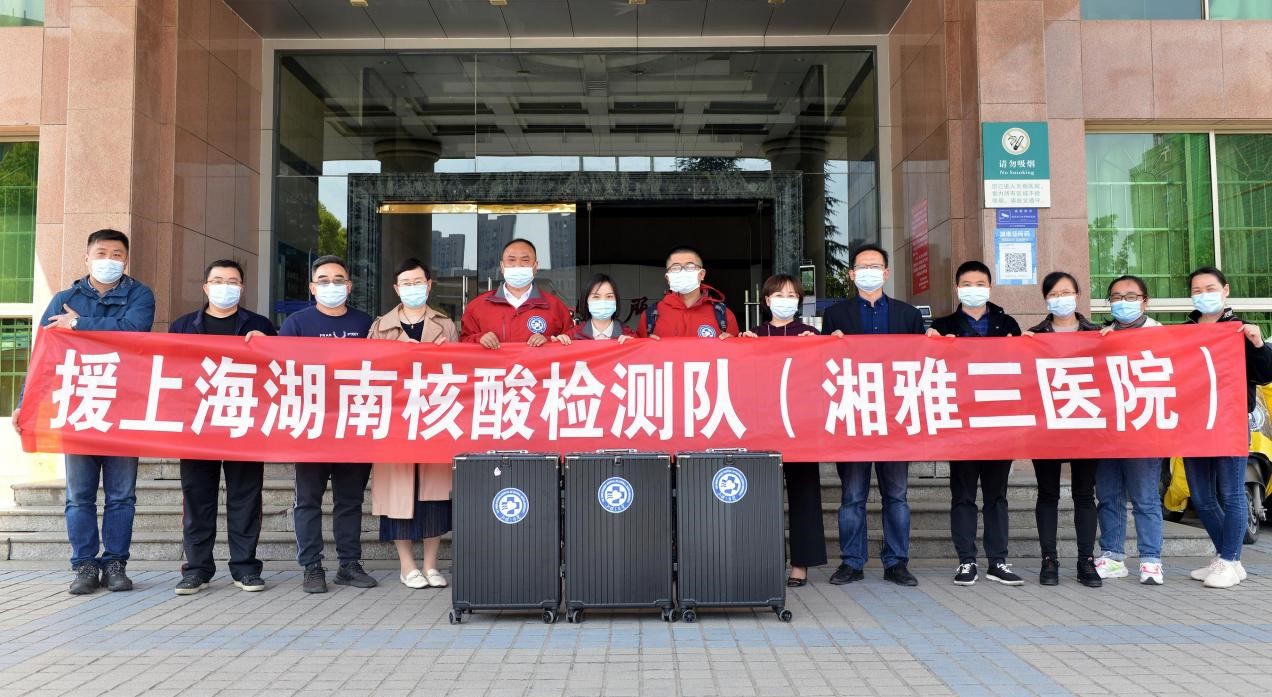 章迪(左5)随援上海湖南核酸检测队出征。谢卓 摄
