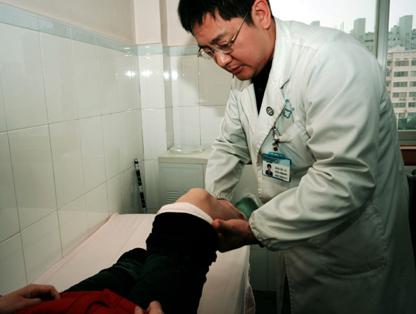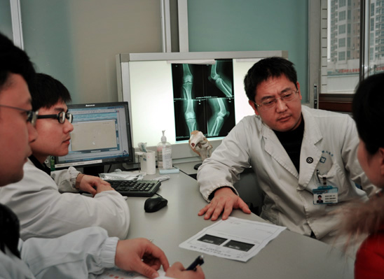 那一个多月的时间,异常忙碌而充实。病人入院前,他带领爱心病房的全体医生反复开会、讨论,确定了“不误诊、不漏诊、不耽误”的“三不”治疗原则,制定了几套详尽的预备救治方案。病人入院后,又带领医护人员在两个小时内完成了对48位伤员的初诊,对所有的伤员进行了全面摸底,重点排查,清查创口、完成换药、重打石膏,24小时之内完成基本而全面的临床检查,建立了完整的医疗档案、家庭信息档案。第二天,全院专家再次大会诊,针对每一位病人制定了个性化的治疗方案,并逐一向病人及其家属沟通解释。