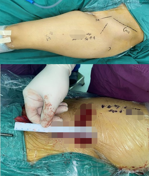 43岁的龚女士现居云南,因外伤导致左股骨颈头下型骨折,且为移位最严重的Garden IV型,股骨头坏死率可能高达40%,当地医院建议她接受髋关节置换手术。尚年轻的她心怀希望四处打听,从朋友那里得知中南大学湘雅三医院骨科可以开展中青年患者保髋手术,便驱车1400多公里,慕名找到中南大学湘雅三医院创伤骨科。接诊后,骨科兼关节外科主任吴松教授、创伤骨科主任罗令教授为远道而来的龚女士进行了会诊,与她进行了深度交流,综合考虑患者年龄、严重股骨头骨折后坏死率高等特点,制定了一期采用创新性旋髂深血管蒂髂骨瓣移植技术来修复股骨颈骨折、预防股骨头坏死的方法。
