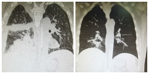 图2:晓志入院时与出院前肺部CT对比