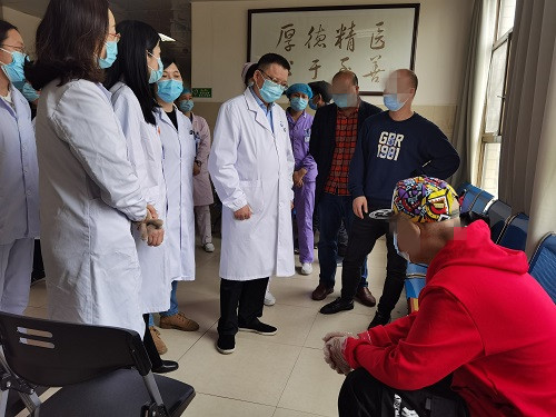 湘雅三医院院长张国刚、血液内科主任李昕教授、刘竞教授、副主任蒋铁斌教授,呼吸与危重症医学科主任孟婕教授、呼吸重症监护室主任刘纯副教授及医护团队共同探望了晓志,并就出院后的门诊随访等事项做了详细嘱托。患儿亲属表示:”当初连夜120转运,也就是放手一搏,路上心跳150多,仪器不断报警.....没想过能恢复得这么好,真的很感谢.....”