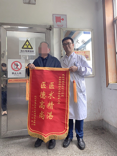 劳动节前,77岁的沅江市退休老人陈爷爷专程来到湘雅三医院,将一面印有“医术精湛 医德高尚”的锦旗送给中南大学湘雅三医院口腔科的全体医务人员,感谢湘雅三医院口腔科郭新程教授及全体医护人员的救命之恩。