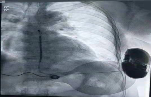 综合以上因素,张志辉团队经过充分的术前讨论后,于9月17日为患者成功植入SICD。术前经过X线透视一次,确定最佳感知位置,并用记号笔标识,关闭射线。手术在无射线的情况下,50分钟顺利结束,并且术中进行诱颤测试。采用50Hz,200mA交流电方式诱发室颤,S-ICD正确识别,经首次65J除颤成功,标准着SICD正式的成为患者预防猝死的利器,同时也标志着湖南省首台SICD植入成功。