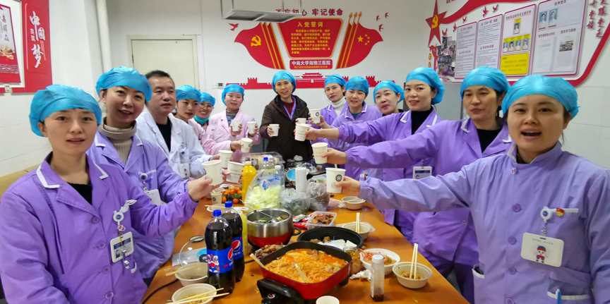 这繁忙的一天,不仅要开展三班透析,还接到10台床旁血滤需求电话。20多个工作人员在血透室这个大家捧上了一碗热腾腾的属于透析人特殊日子的“年饭”!