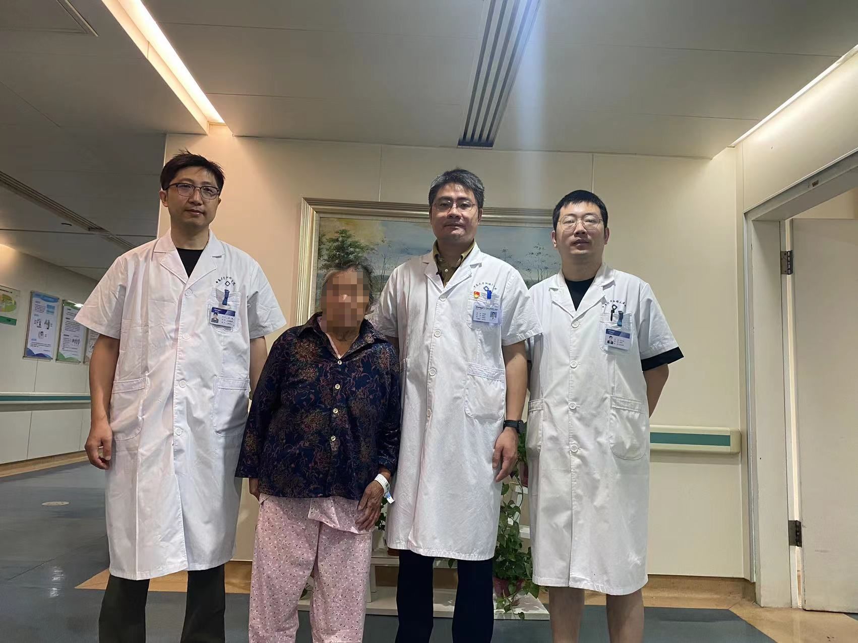 图为患者顺利出院前与治疗团队合影