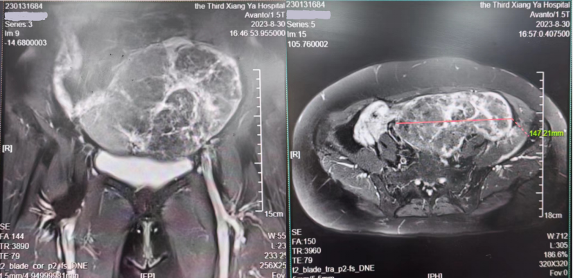 据介绍,60岁的何阿姨13年前检查发现子宫肌瘤,当时未予重视。但今年8月21日何阿姨复查B超发现肌瘤增大至17cm。患者及其家属就医心切,怀揣着对湘雅三医院妇科的信任慕名来院就诊,并入住妇科22病区。
