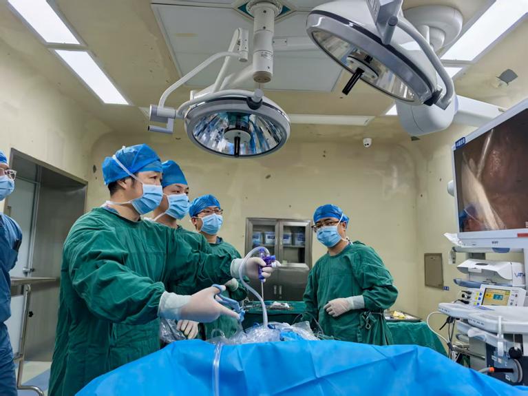 12月18日,湘西自治州人民医院在中南大学湘雅三医院泌尿外科帮扶专家汪金荣的指导与主持下,联合该院泌尿外二科谢光彪教授团队,为一名巨大肾肿瘤患者实施湖南省首例“腹腔镜下氩气刀零缺血免缝合肾部分切除术”。本次手术精准切除了患者右肾一处9.6×7.5厘米的肿瘤,并完整保留了正常肾组织。该例手术的成功,不仅是湖南省泌尿外科领域的重要突破,也为复杂肾肿瘤患者提供了更优治疗选择。