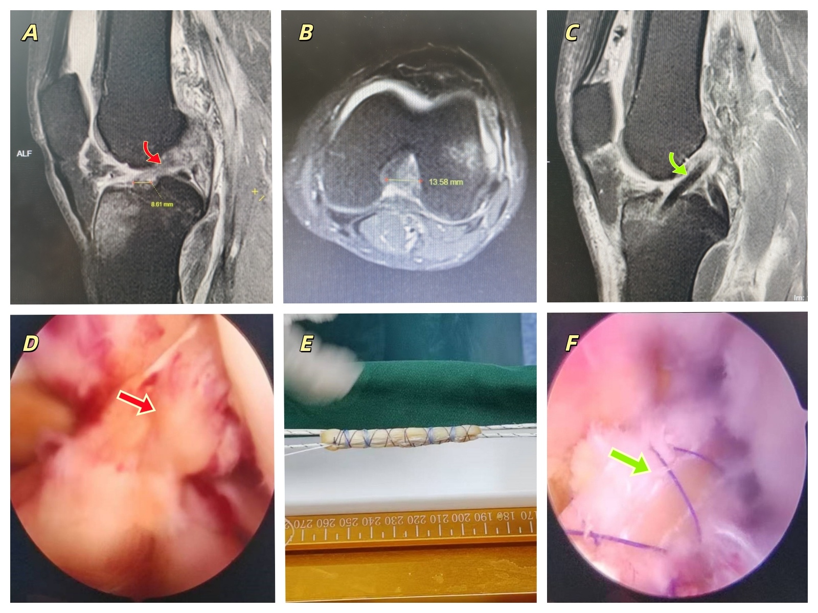 患者徐某,因工作时不慎跌倒导致左膝肿痛、功能障碍1周来龙山县人民医院就诊。结合病史、体格检查及影像学检查,诊断为:左膝ACL撕裂(3级,Sherman II型)。患者较年轻、有劳动需求,手术指征明确。王梓力医生通过影像学评估患者ACL足印区及髁间窝形态后认为,该患者重建韧带直径为8mm较为合适。