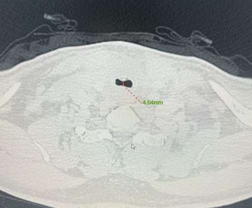 患者薛伯伯罹患甲状腺乳头状癌,肿瘤不仅侵犯被膜及周围结缔组织,更严重压迫气管,导致气管变形。CT提示气管受压显著,随时可能发生气管塌陷或术中大出血,引发窒息风险。此类病情常涉及气管切除重建、神经保护、术后气管插管及ICU监护等多重挑战。