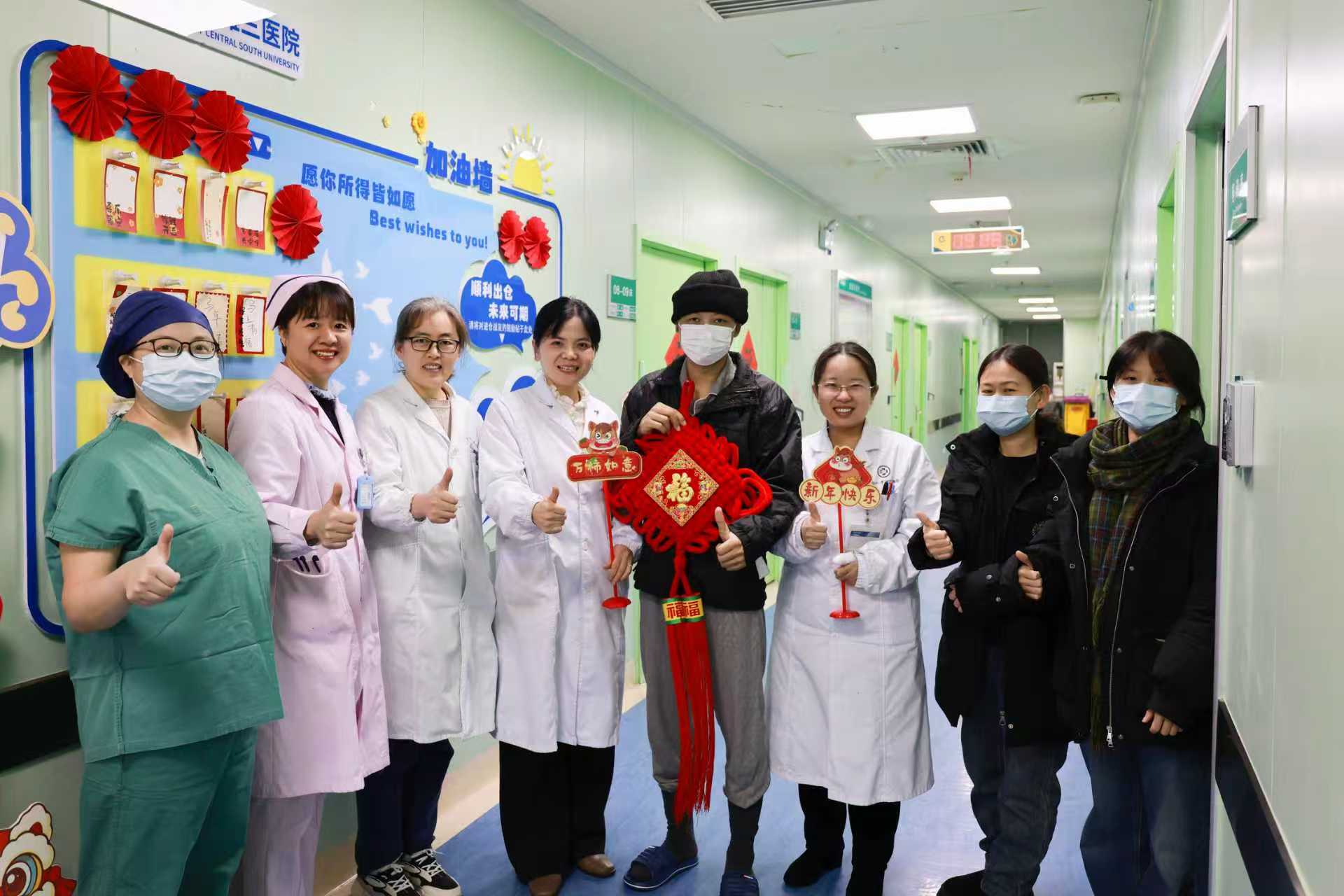 新年第一天,两个家庭的同时团圆,是湘雅三医院血液内科造血干细胞移植实力的生动写照。作为国家临床重点专科,科室深耕移植技术二十载,年移植量稳居省内前列,其中技术难度最大的亲缘单倍体移植占比超60%。从成功挑战67岁高龄患者移植,到创下10天完成无关供者移植的“新湘雅速度”,再到如今春节期间同时护航两例高难度移植,团队用一次次硬仗,诠释着医者的使命与担当。“如果拖到年后,这个年他们根本没法安心过;但如果年前做,我们就必须在春节期间投入加倍的人员和精力。”血液内科主任李昕教授说,“但我们想的是,让他们能过一个真正意义上的‘新年’——不仅仅是日历翻篇,而是生命翻篇。”