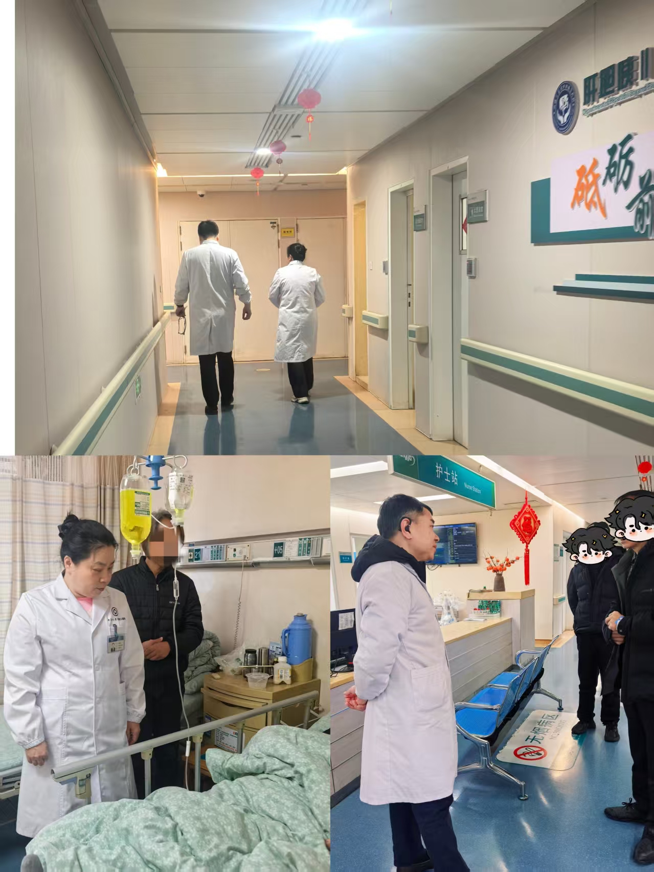转到腹腔积液和消化道出血的重症患者,团队的脚步更加谨慎。蔡立峰仔细查看引流管的固定情况,反复核对各项检验指标,和总住院医师一起分析病情变化的每一种可能。“春节期间患者的情绪容易波动,我们不仅要治病,更要安抚他们的心情。”他一边鼓励患者在病房散步,一边轻声安慰,让紧张的病房里多了几分暖意。