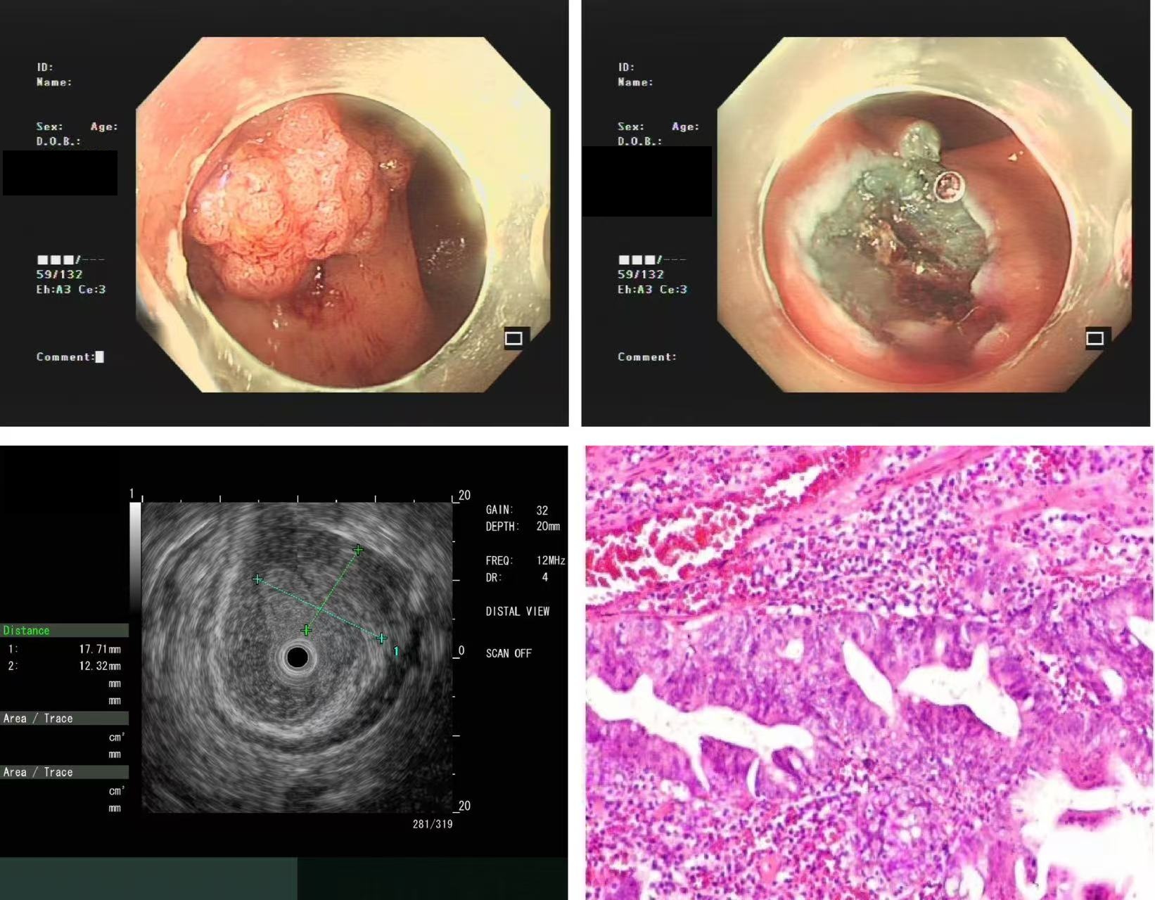 在王瑞主治医生全程指导带领下,龙山县人民医院消化内科团队严谨操作,顺利完成该院首例微探头超声内镜检查,结果显示病变局限于黏膜层,黏膜下层完整连续、回声无异常,符合内镜下微创治疗指征。医疗团队据此制定内镜黏膜下剥离术微创切除方案,术后病理也证实病变为局灶腺体高级别上皮内瘤变、局限于粘膜层,这与超声内镜术前层次判断一致。此患者达到了病变治愈性切除,规避外科大手术创伤,实现“微创治愈、精准诊疗”目标。