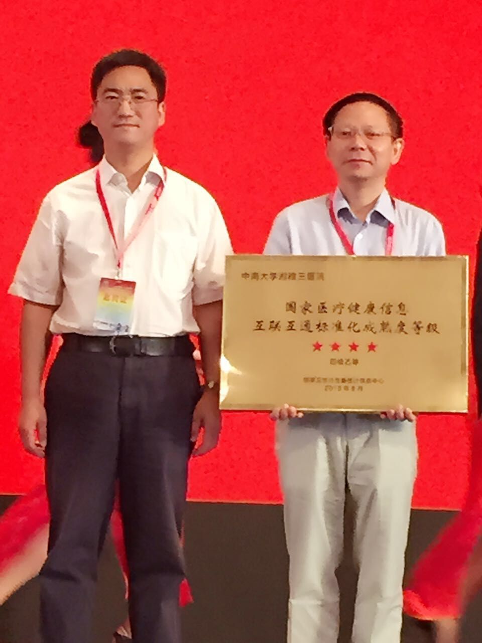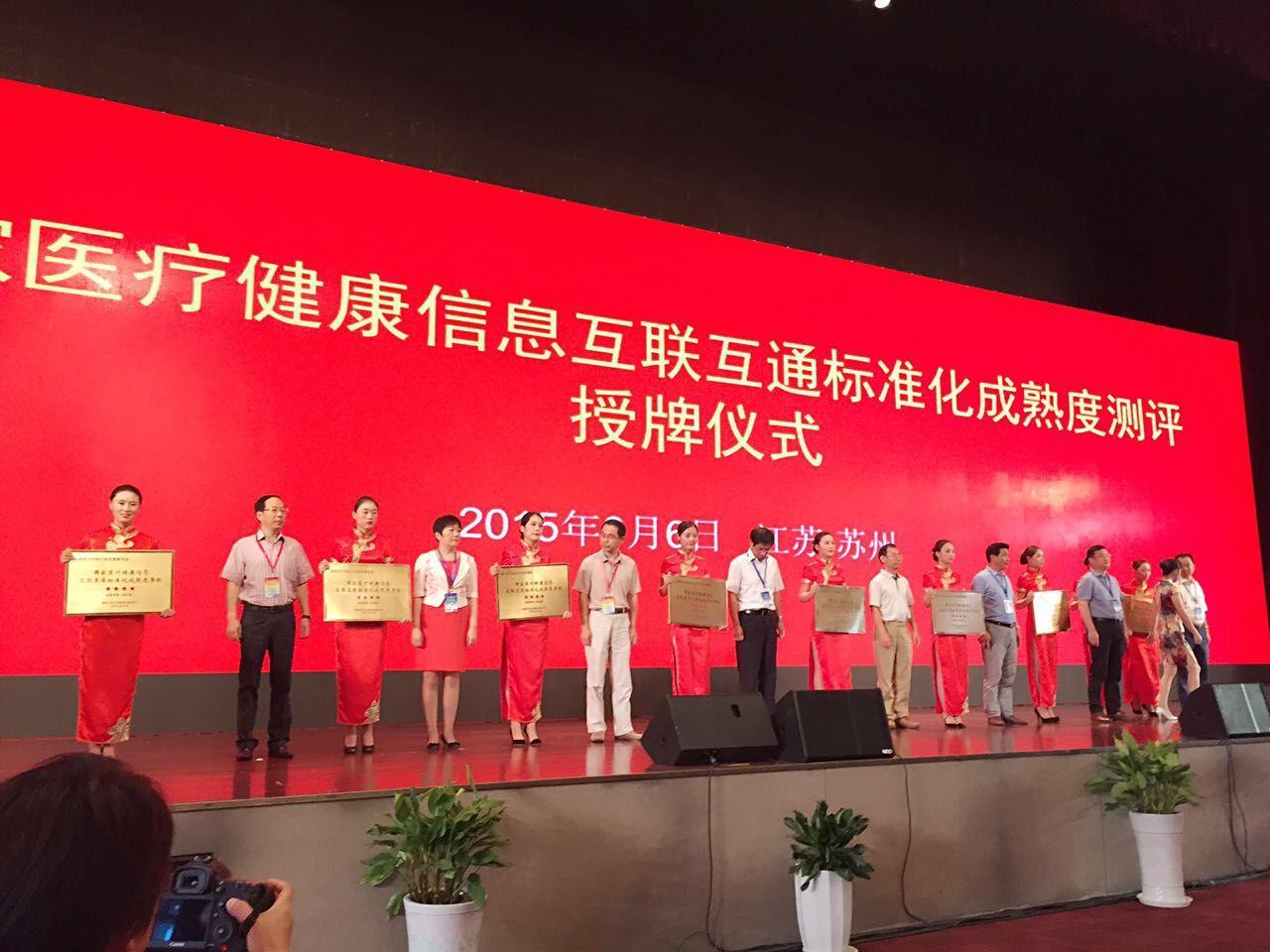 8月6日,国家卫生计生委“医疗健康信息互联互通标准化成熟度测评授牌仪式”在苏州举行,这个授牌是卫生计生委现今唯一的官方测评,全国现今仅十三家医院获得了此授牌的最高等级四星级别,中南大学湘雅三医院历时两年的努力,经过六大步骤的官方和第三方客观测评,获得了授牌殊荣,党委书记罗爱静和副院长袁洪代表我院出席并正式接受授牌四星。