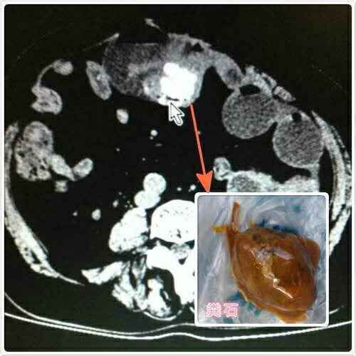 主管医师冯超副教授在询问病史时得知王大爷喜食柿饼,推测肠梗阻的原因很有可能是粪石形成,随即为王大爷安排了全腹CT,结果显示回肠腔内有一5x3cm的巨大粪石。按照急腹症的处理原则,理应为王大爷立即手术取出粪石、解除肠梗阻。但是王大爷情况较为特殊,一是患有多年心脏病,;二是既往曾做过腹部手术,术后并发了腹壁疝,一直至今。因此,王大爷和家属比较抗拒手术,并恳请保守治疗。