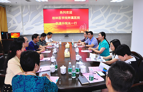 罗爱静书记先后介绍了我院概况、发展历程及学科特色,简要阐述了医院近年来在人才团队建设方面的发展与突破。并表示,长期以来我院与桂林医学院附属医院保持了良好的友好往来关系,双方互相支持、加强合作,结下了亲密的友谊,我院愿在今后继续深化同桂医附一院之间的交流合作,让友谊之花更加灿烂。