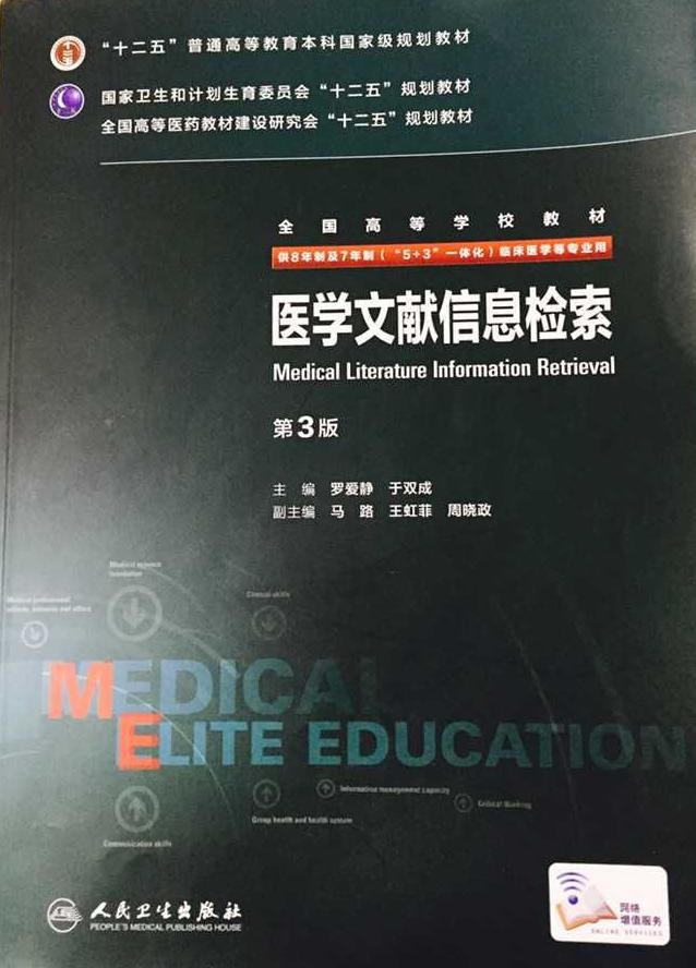 湘雅三医院罗爱静教授主编的“十二五”普通高等教育本科国家级规划教材、国家卫生和计划生育委员会“十二五”规划教材、全国高等医药教材建设研究会“十二五”规划教材《医学文献信息检索》第三版由人民卫生出版社编辑出版。