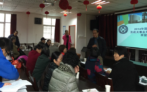 12月9日下午,人力资源部、离退休办组织了离退休同志在医院离退休多功能活动室集中学习了《国务院关于机关事业单位工作人员养老保险制度改革的决定》(国发【2015】2号)、《国务院办公厅关于印发机关事业单位职业年金办法的通知》(国办发【2015】18号)、《湖南省人民政府关于机关事业单位工作人员养老保险制度改革的实施意见》(湘政办发【2015】38号)、《湖南省人民政府办公厅调整工资标准增加离退休费三个办法》(湘政办发【2015】79号)等政策规定。近60多名离退休同志和人力资源部的工作人员参加了会议。